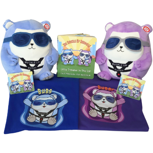 Our collection of Buckle Up Buddy products are thoughtfully crafted to inspire kids to embrace safety in a fun and engaging way. From our lovable plushies, Bubs and Bubby, to colorful t-shirts, storybook, and playful sticker, every item promotes the importance of buckling up in a fun and joyful way!